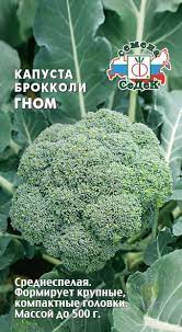 Среднеспелая Формирует крупные, компактные головки Массой 500 г. Среднеспелый (от всходов до срезки 85-100 дней) сорт. Розетка листьев приподнятая. Лист средний, серо-зелёный, со слабым восковидным налётом, слабопузырчатый, сильноволнистый по краю. Головка среднего размера и плотности, округло-овальная, серо-зелёная, среднебугристая, массой 400-500 г, с хорошими потребительскими и вкусовыми качествами. После срезки основной головки формирует несколько вторичных, массой от 20 до 50 г.