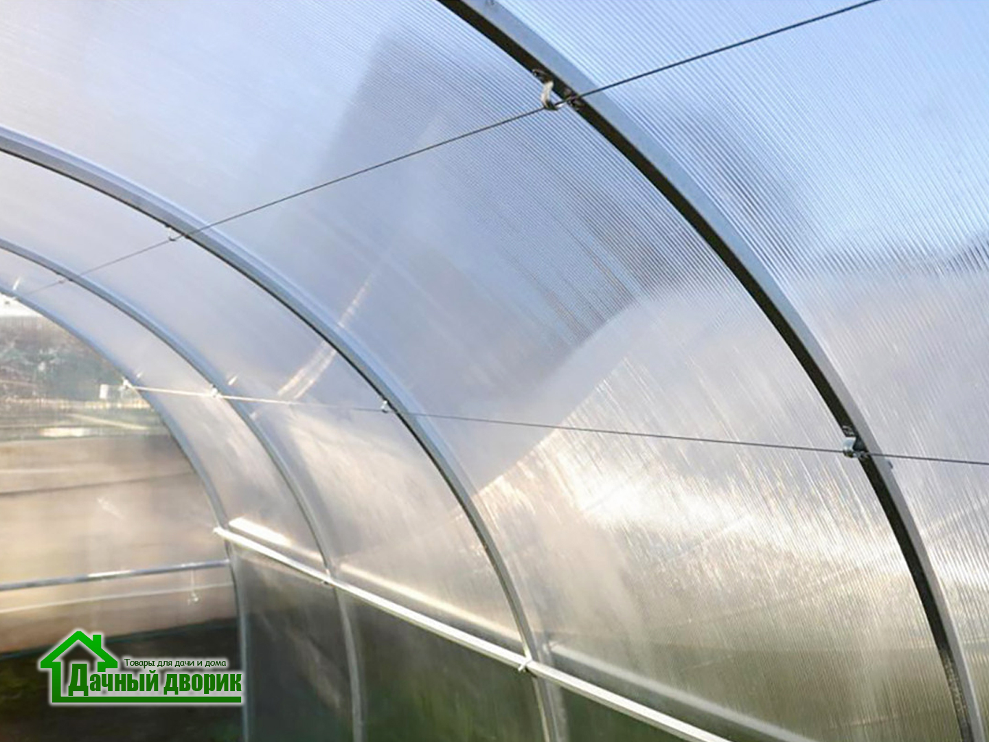Представляет из себя надежные стальные тросы в мягкой прозрачной оплетке, которые фиксируются горизонтально на торцах и дугах внутри тепличной конструкции.